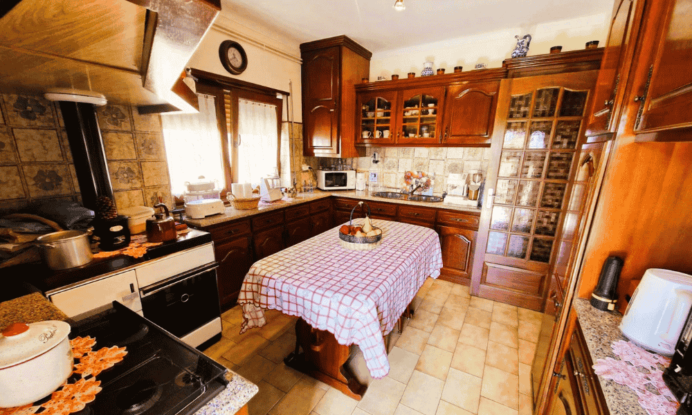 A moradia T3 distribui-se por três pisos com entrada própria. No piso -1, encontra uma adega, dependência para arrumos, sala de apoio, cozinha de apoio mobilada e uma casa de banho — um piso perfeito para convívio, armazenagem e apoio a eventos familiares.