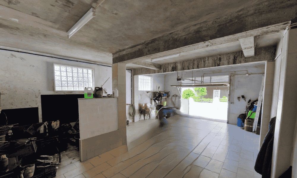 Duas garagens, uma com portão automático, com capacidade para quatro a cinco viaturas